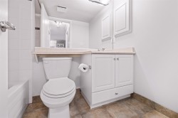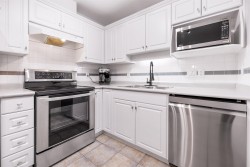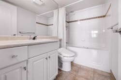 Welcome to the desirable Kathleen Court! This immaculate 2 bedroom , 2 bath 1050 sq ft condo is a perfect place to call home. Great split floor plan with bedrooms on opposite sides. Gas fireplace in living room with sliding door leading to large covered deck to enjoy your morning coffee. Laminate floors in living & bedrooms. White kitchen with stainless steel dishwasher & stove. Extra room for storage & new microwave. In suite laundry room with full size washer & dryer. Complex is well managed with amenity room/guest suite & stunning valley Views. Secured underground 2 side by side parking spots for your full size truck & massive storage locker for all your storage needs! Footsteps to all levels of schools & downtown with shops & restaurants. Mr. & Mrs. Clean live here!