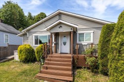 Welcome to this beautifully renovated 1910 character home in the heart of Mission that blends timeless charm with modern touches. Thoughtfully updated inside and out, this 3 bedroom, 2 bathroom home features a stunning custom kitchen with stainless steel appliances, sleek countertops, and a gas range, along with a spa-inspired bathroom complete with a jacuzzi soaker tub. Crown mouldings, wood trim, newer vinyl windows, French doors, and pewter fixtures add to the home’s elegance. The spacious, fully finished basement includes a rec room, den, bedroom and storage. Step outside to a fenced backyard oasis with large decks, lane access with space for RV parking. The bus stops right outside your door, easy access to shopping and West Coast Express. Future development potential!