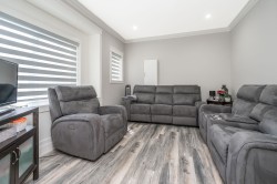 Gorgeous home in a family-friendly neighbourhood! This 5 bedroom + den, 4 bathroom basement entry home backs onto a greenbelt and offers 2,592 sqft of living space. Bright white kitchen with feature island and breakfast bar opens to the dining and living room with 9’ ceilings, large windows, and access to a deck with a peaceful greenbelt view. Upstairs has 3 bedrooms including a spacious primary with walk-in closet and ensuite. Flat lot with a fully above-ground 2 bedroom suite—ideal for in-laws, adult kids, or as a mortgage helper. Quiet street, walk to parks, schools, and shops!