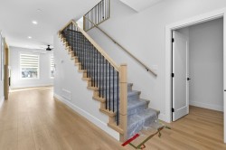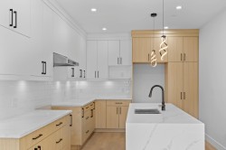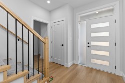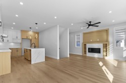 3 level 1/2 duplex with 1 bedroom suite and double garage! This unique floorplan offers modern kitchen with flat panel cabinetry and quartz countertops, great room with gas fireplace and Primary bedroom on the main floor. Top floor for children with 2 bedrooms, full bathroom and laundry! Lower level is ground level with 1 bedroom suite with separate entrance and own laundry (no stairs for your parents and no window wells, bright, all above ground) Long life metal roof, double garage, huge driveway, heat pump/ac, all at an unbeatable price with no strata fees or rules! Better than a townhome, call today to view!