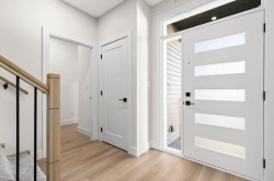 3 level 1/2 duplex with 1 bedroom suite and double garage! This unique floorplan offers modern kitchen with flat panel cabinetry and quartz countertops, great room with gas fireplace and Primary bedroom on the main floor. Top floor for children with 2 bedrooms, full bathroom and laundry! Lower level is ground level with 1 bedroom suite with separate entrance and own laundry (no stairs for your parents and no window wells, bright, all above ground) Long life metal roof, double garage, huge driveway, heat pump/ac, all at an unbeatable price with no strata fees or rules! Better than a townhome, call today to view!