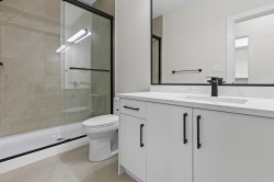 3 level 1/2 duplex with above ground 1 bedroom suite! Main floor enjoys Primary bedroom with walk-in closet and tiled ensuite, modern kitchen with sleek flat panel cabinetry, quartz countertops, centre island, spacious great room area with stunning fireplace! Top floor provides 2 bedrooms , full bathroom and laundry. Basement is fully finished with bedroom, bathroom, laundry, kitchen and living room! 2 car garage , heat pump, long life metal roof, better choice than a townhome with no bylaws, rules or strata fees, call today!