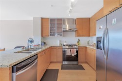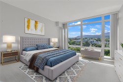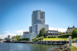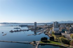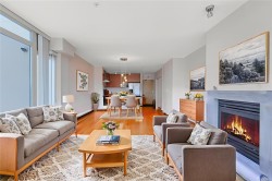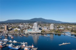 This bright & modern 2-bed, 2-bath condo offers the ideal combination of style, comfort & location—right in the heart of Nanaimo’s dynamic downtown waterfront. The open-concept layout connects the kitchen, dining & living areas, creating a spacious feel that’s perfect for both everyday living & entertaining. The gourmet kitchen features granite countertops, stainless steel appliances & a handy eating bar. Hardwood floors, floor-to-ceiling windows & a cozy gas fireplace add warmth throughout. Step outside to your private, south-facing patio to take in views of Mount Benson. The bedroom includes a walk-in closet, & 4-piece bath is both functional & stylish. With secured underground parking, in-suite laundry, storage locker & a pet- & rental-friendly building, this unit checks all the boxes. Gas is included in the strata fee. Walk to the seawall, cafes, restaurants, theatre, library, & catch a seaplane to Vancouver in just 15 minutes. Measurements approx. – buyer to verify if important.