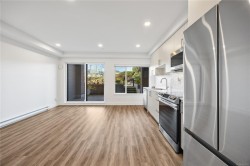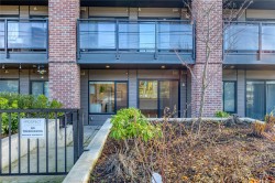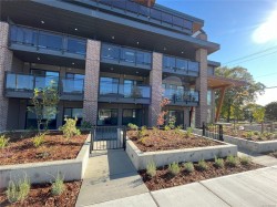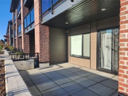 102–147 Haliburton Street, Nanaimo. Almost new downtown Nanaimo studio condo with NO GST. Ideally located within walking distance to downtown shops, restaurants, waterfront amenities, and the HULLO Ferry to Vancouver, making it perfect for commuters or investors. Just steps from the ocean, this modern building offers residents access to a stunning rooftop terrace with panoramic ocean views.This stylish ground-floor unit features high-end Samsung appliances, granite countertops, and elegant bathroom tile finishes. A large, private fenced patio provides excellent outdoor space rarely found in studio condos. Ground-level access makes this home ideal for seniors, pet owners, or those operating a home-based business. A fantastic opportunity to own a low-maintenance, modern condo in one of Nanaimo’s most walkable and convenient locations.Measurement is approximate, pls verify if important.