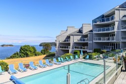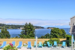 Enjoy stunning ocean views from this 1325 sq ft, 2 bed, 2 bath ground-floor condo in Seascape Manor, set on 4 acres of high-bank waterfront overlooking Departure Bay. Picture windows throughout fill the home with light, while a nearly 40’ patio offers the perfect spot for morning coffee or patio gardening. Inside, you’ll find an updated kitchen, cork floors, and an electric fireplace for cozy evenings. The primary bedroom features a 3 piece bath with level-entry walk-in shower, with the second bath has a 4 pice tub/ shower. Modern Roman-style blinds filter out the early morning sunshine. The building has undergone extensive renovations, including a refreshed pool deck, hot tub, and sauna. A convenient parking stall is included. This home blends space, comfort, and resort-style amenities in a spectacular waterfront setting.