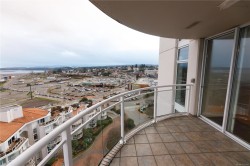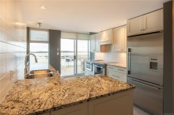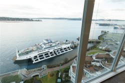 Welcome to 1501–154 Promenade Drive in the Beacon Building on Cameron Island. This approximately 2 bed 2 bath condo offers breathtaking 180-degree views of the Nanaimo waterfront, overlooking Protection, and Gabriola Islands. Renovated in 2014, the home features a modernized kitchen complete with heated tile flooring, quartz countertops, and an open-concept layout created by removing walls to enhance flow and natural light. Additional highlights include hardwood flooring, a ductless split heat pump, a gas fireplace, and exceptionally built-in closets in the primary bedroom. The unit offers ample in-suite storage, including an oversized pantry, as well as a separate storage locker. Floor-to-ceiling windows and views from every room truly showcase luxury waterfront living. The spacious primary ensuite features a four-piece bathroom, while the second bathroom is a three-piece. This unit also includes two parking stalls. (measurements approximate, verify if important)