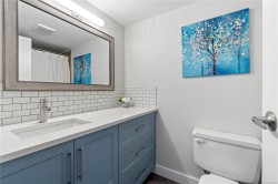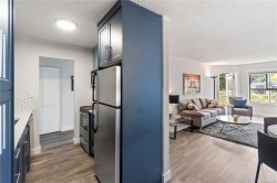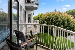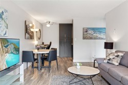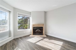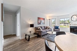 Bright, tastefully updated one-bedroom home directly across from Departure Bay Beach. Enjoy year-round partial ocean views, with wider openings through the trees in fall and winter. The kitchen features custom cabinetry, quartz counters, modern lighting, fresh paint, quality flooring, and a full suite of BRAND-NEW stainless-steel appliances (dishwasher 2022). A NEW in-suite stacking washer/dryer is a rare convenience in this building. From the balcony, take in the fresh air and watch the ferries arrive and depart. The home includes a generous living area, comfortable bedroom, full 4-pc bath, and excellent in-suite storage. Steps to Drip Coffee, close to Brooks Landing, transit, parks, playgrounds, and shoreline paths. Low strata fees and 1 parking spot. Cat allowed; rentals permitted. Vacant and available for quick possession. Measurements by Proper Measure - buyer to verify if deemed important.