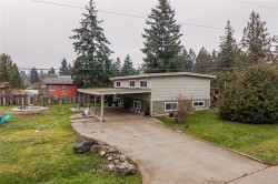 Hard-to-find 5-bedroom family home on a generous 15,367 sq ft lot. The main level features the kitchen, living room, dining area, three bedrooms, and a full 4-piece bathroom. The lower entry level offers a spacious family room, two additional bedrooms, a full bathroom, laundry room, and a versatile flex space ideal for an office or storage. This home provides plenty of room for the whole family to spread out and enjoy. The interior of the home has been extensively updated in recent years, improvements include the kitchen, bathrooms, flooring, paint, lighting, blinds, windows, heat pump, perimeter drains, and upgraded electrical panel. The large, level yard is perfect for kids and pets, with a tall hedge offering privacy from Yellow Point Road, apple and pear trees, and a well-sized workshop with power plus covered storage for a boat or RV. All measurements are approximate and should be verified if important.
