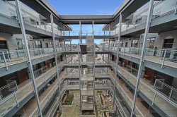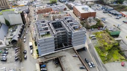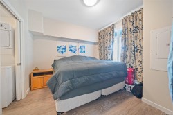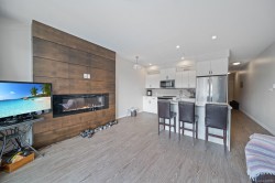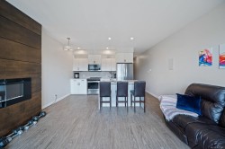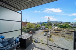 Step into urban comfort with this south-facing 1-bedroom, 1-bathroom condo in the heart of Downtown Nanaimo that includes 1 secure underground parking stall. Built in 2019, this modern home is part of a thoughtfully designed courtyard-style building, featuring open-air hallways that bring fresh air and a sense of community right to your doorstep. Inside, you’ll find a smart and stylish layout. The large bedroom is located at the front of the unit and includes a walk-in closet with in-suite laundry. The cheater ensuite offers convenient access to a 4-piece bathroom. Continue down the hallway to the bright kitchen, complete with quartz countertops, a tiled backsplash, stainless steel appliances, and a sit-up island—perfect for casual meals or entertaining. The open-concept living and dining area flows seamlessly to a large, south-facing deck where you can relax and take in views of Mount Benson. (Measurements and data approximate; verify if important.)