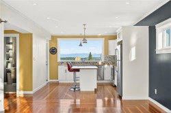 Welcome to the Kennedy Effect. Perched in Nanaimo’s Old City Quarter, this fully renovated 2 bed, 2 bath character home offers sweeping ocean, downtown, and mountain views stretching to the Sunshine Coast. Loaded with value and future equity potential, this cozy yet flexible home blends charm with opportunity.The bright, open main floor features large windows, a versatile bedroom/den, a luxe 4-piece bath with clawfoot tub, and a welcoming kitchen perfect for intimate gatherings. Step onto the expansive deck to enjoy harbour activity, ferries, cruise ships, sunsets, and coastal views.Upstairs is a custom primary suite with walk-through closet, spacious ensuite, and stunning outlooks. The finished lower level offers creative potential - ideal for family use, studio, yoga space, or future suite.A massive 4-car garage, lane access, and R14 zoning allow for a laneway home or garage suite. Oceanview living with exceptional upside in a rapidly evolving neighbourhood!