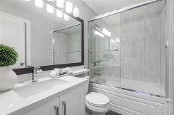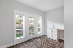 Semi-detached FRONT DUPLEX w/ single car garage. Meticulously crafted by Nash Custom Homes with balance of warranty. This architectural masterpiece delivers unparalleled luxury and quality. Featuring 5 bed, 4 full bath, and over 2,100 sqft of thoughtfully designed living space. Ideal for those seeking premium living near New West’s top amenities. Notable highlights include sunsets on your private rooftop patio, quartz countertops, KitchenAid appliances, Kohler fixtures, in floor heating, massive 884 sq ft crawl space, artificial turf, and Wi-Fi thermostats. Added bonus:The potential micro suite offers versatile use and can even be rented to a business, such as a salon or barber.