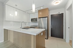 Welcome to Parkside in the highly sought-after Victoria Hill community. This shouth-facing 1 Bd + Den features an efficient open-concept layout with 9 ft ceilings, a modern kitchen with quartz countertops, SS appliances, a gas cooktop, and a large balcony w/ floor-to-ceiling windows that fill the entire home with natural light. Enjoy unobstructed views of the Fraser River, Queens Park & Woodlands memorial Garden. The bedroom offers access to the balcony and a large walk-in closet. Only 5 min to transit, the Quay, parks & Aquatic & Community Centre. Low strata fees include access to resort-style amenities: a hot tub, outdoor pool, fully equipped gym & yoga studio, theatre room, party room guest suites & on-site concierge. Rentals and pets allowed. Includes 1 parking and 1 locker.