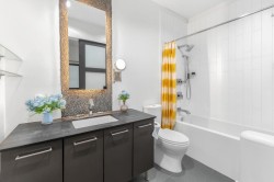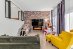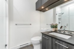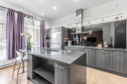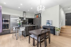 Glasshouse Lofts by Aragon! This stylish home features 10ft ceilings and a bright open-concept layout where the kitchen, living, and dining areas feel wide and airy - perfect for gatherings or relaxed family time. The living space is highlighted by a striking accent brick wall and an elegant electric fireplace. The kitchen is well equipped with stainless steel appliances, abundant cabinetry, and a generously sized pantry. Thoughtfully designed hidden storage spaces above the bedrooms provide excellent functionality without sacrificing living space. An EV-ready parking stall adds modern convenience. Situated directly across from Port Royal Park, this beautiful home is also just steps to the Q to Q Ferry, Queensborough Landing Outlet, newly opened Costco, scenic riverside trails, and more!