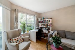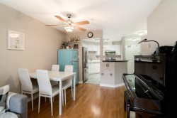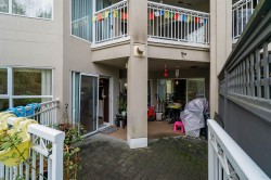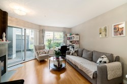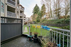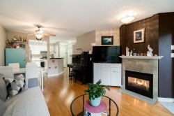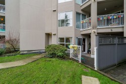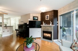 Peaceful & quiet ground floor patio opens to a contained green space! Perfect for kids, pets or anyone who loves greenery outside their window. This home features hardwood floors, updated kitchen countertops, stainless steel appliances, new toilets, a cozy gas fireplace, large windows & an efficient layout. Gas & hot water included in strata fee. Enjoy a spacious patio off the living room, 2 good-sized bedrooms incl a large primary w/ walk-through closets & 4-piece ensuite. Fantastic location close to parks, schools, Downtown, Uptown, SkyTrain, shopping, restaurants, Douglas College & much more. Building upgrades incl exterior, plumbing & elevator replacement. 1 parking & 1 storage locker. Pets/rentals allowed.