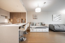 Resort-style living at its best. This beautiful 1-bedroom at The Peninsula offers stunning views, high-end finishes, and a sleek kitchen with fully integrated Gaggenau appliances. Enjoy a large covered deck with a natural gas BBQ hookup and the peaceful vibe of Queensborough, steps to parks, riverfront trails, and the Q-to-Q Ferry. Only 5 minutes to Costco for added convenience. The elegant 4-piece bath features in-floor heating, and the building offers concierge service, a full fitness centre, hot tub, steam room, theatre room, party room, chef’s kitchen/lounge, and a guest suite for $75/night. Rentals allowed.