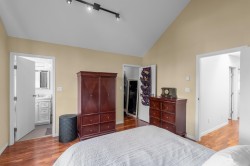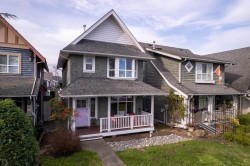 Waterfront living with stunning Fraser River views right from your doorstep! Situated directly across from the river, this beautifully maintained original-owner home enjoys unobstructed sightlines and direct access to the scenic waterfront pathway leading all the way to the marina. Bright and inviting, the home features a granite kitchen with gas stove and eating area opening to the backyard patio, a spacious living room with gas fireplace, and a vaulted primary bedroom with walk-in closet and ensuite with tile floors and glass shower. Updates include hardwood floors throughout (including stairs), fresh interior and exterior paint, newer hot water tank, new dishwasher, gutter guards, stone back patio, and a detached double garage for all your toys!