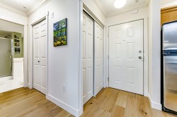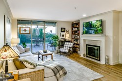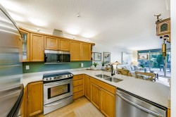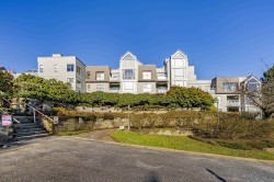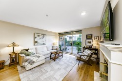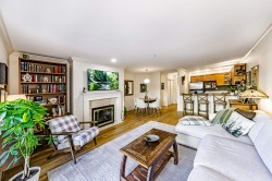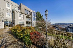 Spacious & rarely available GARDEN LEVEL suite with LARGEST PATIO in the complex overlooking lovely landscaping with peak-a-boo river, castle & mountain views! Recently updated 1 Bed & Den (currently being used as a bedroom) & 1 Bath, 880 sf "move in ready" suite with updated SS appliances, Silestone counters in kitchen & bath, HARDWOOD flooring throughout, updated lighting, new paint & more. Huge 400 sq ft sunny garden patio perfect for entertaining, BBQ or pets. Extremely proactive strata with recent major upgrades such as: Rainscreened (2000), Re-piped (2019), updated common areas & ROOF REPLACED in 2023. Great location walking distance to transit, walking/bike trails, shopping, parks, schools & new Aquatics Center! 1 parking stall & HUGE storage locker included. BONUS Level 1 charging!