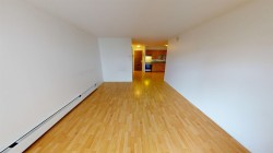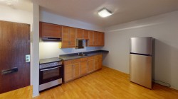 Affordable living in Uptown New Westminster! This bright bachelor suite offers a smart open layout with a defined sleeping alcove that provides a comfortable spot for your bed. Features easy-care laminate flooring throughout, and a spacious kitchen with plenty of cabinetry. Enjoy a covered balcony for year-round use. Steps to transit, Royal City Centre, Walmart, medical offices, restaurants, parks, schools, and within walking distance to SkyTrain. Low monthly fee includes heat, hot water, and property taxes. Quiet age-restricted building (40+). Includes secure underground parking, and shared laundry. No pets or rentals. Non-strata building, all cash purchase required.