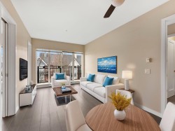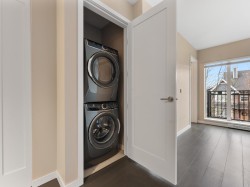 Great location in the heart of desirable Queensborough! This 2-Bedroom unit features an open-concept floor plan with 9 ft ceilings, high-end modern finishes, hardwood flooring throughout, elegant quartz countertops and newer appliances, such as washer, dishwasher and microwave. Both bedrooms have walk-in closet. Steps to the Fraser River, ferry access to the Quay, waterfront trail, parks, shopping and dining. Comes with 1 parking stall. ALSO, heat, hot water and city utilities are included in the strata fee. Open House: Feb14 (Sat) 2-4pm.