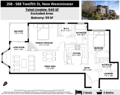Welcome home to The Regency. A VERY well-maintained building with an excellent reputation. Located in the heart of New West: Minutes from shopping, parks, transit & schools. This spacious 940 sq/ft 2 bedroom & 2 bathroom with master en-suite features extra high ceilings & a well thought out & functional floorplan. Upgrades include hardwood flooring in the living area, new countertops, & some bathroom fixtures. Plus a private covered balcony to be enjoyed all year round. The unit includes 1 parking stall close the main door, 1 large storage locker, visitors parking, in-suite laundry, & party room. OPEN HOUSE: Sat, Jan.10, 2 - 4pm Brochure: https://bit.ly/208-588_Twelfth_St
