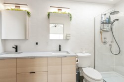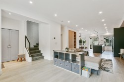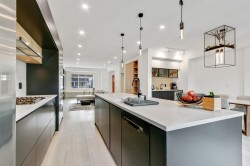 Stop into a stunning kitchen blonding modern design with high-end function. Dosigner fixtures from Buster + Punch, clogant island pendants, Cacsarstone countertops, and custom millwork croate a refinod space, complete with top-tier Bosch appliances. The Open-concept living area offors built-in storago for a clean, stylish look. Upstairs bathrooms foature in-floor hoated tiles for yoar-round comfort. Car lovers will appreciate the polyaspartic-coated garage floor, custom cabinets, attic storage, workspace, and built-in Level 2 EV charger. Enjoy a private deck and landseaped yard perfect for ontertaining. Extra storage. A large, temp-controlled crawlspace has you coverod.
