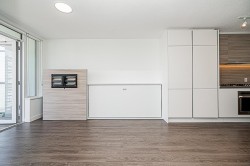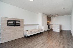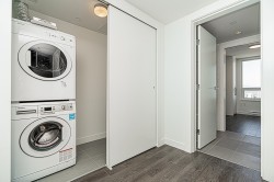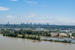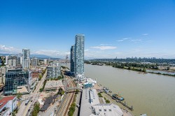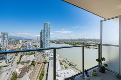 Riversky 1 by Bosa! This stunning waterfront high-rise is located in the heart of New Westminster Quay. This spacious 1 bed, 1 bath home offers 575 sq ft of open-concept living with views of the Fraser River and mountains. Large windows fill the space with natural light. Features include a built-in extendable dining table and a floating TV panel that slides to reveal extra space for a pull-out bed. Amenities include a gym, yoga studio, entertainment lounge, rooftop patio, terrace, and bike room. Steps to the Boardwalk, River Market, parks, shopping, and SkyTrain. Includes 1 parking stall and a storage locker.
