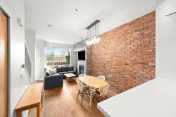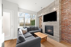 Wake up to river & mountain views in Port Royal, one of the Lower Mainland’s best-kept secrets. This stylish waterfront townhouse features hardwood flooring, top-of-the-line appliances, and a sleek kitchen with quartz countertops, gas cooktop, & drop-down range hood. Sunken living & dining areas offer elegant separation w/ a gas fireplace and modern brick accent wall. The second level offers 2 bdrms and a full bath with soaker tub, while the entire third level is a private primary retreat w/ ensuite & heated flooring. Enjoy both a ground-level fenced private patio & a private rooftop patio, watch tugboats glide by, and take in the ever-changing scenery. Walking trails at your door, plus playground & shopping nearby. Steps to Port Royal Park & the Quay Ferry to SkyTrain. 2 parking + locker.