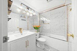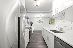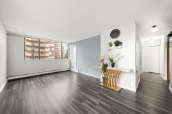 Welcome to Charter House, a well-managed concrete building in the heart of Uptown New Westminster, steps to transit, shopping, schools, parks, library, and recreation. This beautifully maintained 937 sq. ft. corner 2-bedroom, 1.5-bath home has been tastefully renovated with quality in mind, featuring a partially opened kitchen with extended cabinetry, quartz countertops, and updated bathrooms. Maintenance fees include heat and hot water, and the home comes with 1 parking and 1 locker, plus visitor parking. Major building upgrades include plumbing (2007), elevator (2014), roof (2018), and boilers (2021). No Pets Allowed.