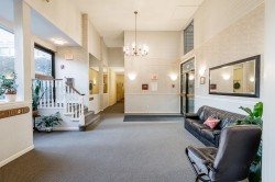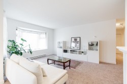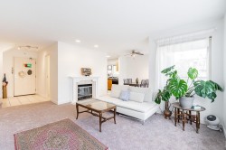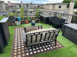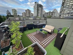 TOP FLOOR, CORNER 2 BED & 1.5 BATH updated suite with generous, private rooftop deck perfect for entertaining, BBQ, gardening or as an extension of your living space. Bright & spacious, 1100 sq ft featuring new carpets throughout, fresh paint, upgraded appliances & light fixtures, newer HW tank (2023), 2 upgraded smart thermostats, wood burning FP, ample storage & covered balcony off the dining area. Recent building upgrades include: Fire Alarm System upgrades, 2 EV charger parking stalls in parkade & Telus Fibre Optics soon to be installed. Located in very convenient Uptown neighbourhood steps away from Moody Park, Royal City Center, transit, banks, shopping, library, restaurants, cafes & more! 1 Parking & 1 Storage included. Rentals allowed! No dogs.