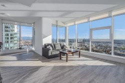 Located in New Westminster’s vibrant waterfront district, this spectacular 39th-floor corner condo offers sweeping mountain views, city lights, and unobstructed views of the Fraser River. This bright 2-bedroom plus den/flex home features floor-to-ceiling windows that flood the space with natural light, an open-concept living and dining area ideal for entertaining, and a chef-inspired kitchen with high-end Bosch appliances, sleek cabinetry, ample storage, and a large island with eating bar. Enjoy Pier West living just steps to shopping, dining, scenic riverfront walks, and SkyTrain, along with resort-style amenities including 24-hour concierge, fully equipped gym, sauna and steam rooms, lounge, outdoor terrace, private dining room, visitor parking, and more.