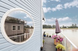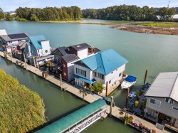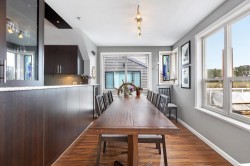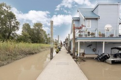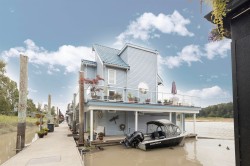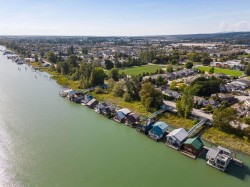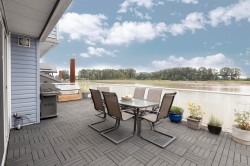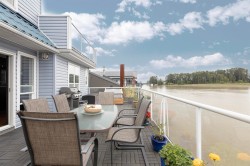 Looking for a WATERFRONT OASIS close to the city! This is the home for you. FLOAT HOME living in Queensgate Marina a top rated gated strata community. This beautiful 3 level 2 bedroom 1330+sqft home offers tranquil living with an incredible outlook. Main level has a covered entry, rec room, fabulous bar, bedroom & bathroom. The kitchen, living & dining area upstairs opens onto a huge wrap around deck. Master is on the top level with a private deck & hot tub overlooking the river. 900+sqft of deck space for entertaining, BBQ's & lounging. Low strata fees! 4 dogs/cats ok. Enjoy your day watching marine wildlife & the river or go to the rec centre, parks, walking, biking, kayaking or take a boat ride. PLUS a BOAT SLIP next to your home with NO MOORAGE FEES.