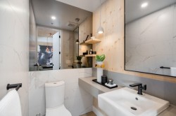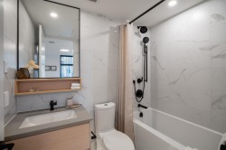NEW PRICING & MOVE-IN READY! Designed for distinction, Timber House by Aragon is the final waterfront addition to Port Royal in New West. This 2-level, 2 bedroom, 2.5 bath, 1,380 SF Penthouse home offers a 325 SF roofdeck with outdoor kitchen & modern, high-design interiors with exposed CLT panels, wide-plank oak floors, A/C & more. Sleek kitchen w/ Fisher Paykel & Smeg appliances, quartz counters, matte black hardware, built-in pantry. Spa-inspired baths w/ heated floors, LED vanities, frameless glass showers. Amenities: Courtyard, gym, BBQ area & dog wash. 2 parking (EV opt), 1 locker. Steps to boardwalk, 12 min to DT New West, 35 min to DT Van. Sales Centre OPEN Saturday/Sunday and Mondays from 1 to 4 pm or by appointment.