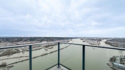 Sky Collection Suite 5001 at Pier West by Bosa. New, never lived in. Bright, open-concept living in this spacious 2-bedroom with far reaching views and close in river view. Functional layout. 10,000+ sq. ft. of amenities include a barbecue terrace, party & dining room, concierge, fitness centre, sauna, steam room, and lounge. One parking stall and storage locker included.
