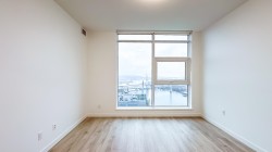 Sky Collection Suite 5004 at Pier West by Bosa. New, never lived in. Bright, open-concept living in this spacious 1-bedroom + den with far reaching views and close in river view. Functional layout. 10,000+ sq. ft. of amenities include a barbeque terrace, party & dining room, concierge, fitness centre, sauna, steam room, and lounge. One parking stall and storage locker included.