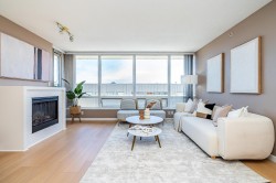 Welcome to "Quantum" built by award winning developer "BOSA". This 1000+ sqft 2 bdrms + Den (can be 3rd bdrm) is your next dream home. Excellent & functional floorplan w/ NO waste of space; Great-room design living space best for gathering, extra in-suite storage/laundry room; 2 separated bdrms provide privacy; Den/3rd bdrm gives you options for guest/additional storage; HUGE windows bring in natural light & spacious feeling; freshly painted & new flooring provides comfort; Amenities: a rooftop garden, sauna, gym, meeting rooms & bike storage. Located right in the heart of New Westminster, steps to Skytrain station, restaurants, Pier Park & New West Quay. Suitable for all kinds of families & investors. Quick possession possible!