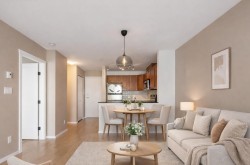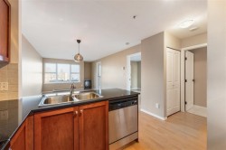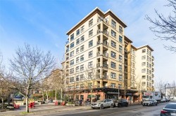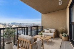 Move-in-ready 1-bedroom home in the San Marino, a mid-rise concrete building on a quiet tree-lined street. This exceptionally clean unit features fresh paint, new vanity, updated doors and hardware. The open-concept living/dining area flows into the kitchen with quality cabinetry, ample storage, full-size stainless steel appliances, and granite countertops. Enjoy a covered patio with mountain views and a quiet rear-facing outlook, set away from street and parking noise. Complete with in-suite laundry, 1 parking, and 1 locker. Steps to Sapperton SkyTrain, RCH, Brewery District, shops, dining, and Hwy 1. A highly livable home, all under $500k. Come and see this one in person! OPEN HOUSE Sat Feb 7th - 2:00pm to 4:00pm