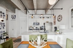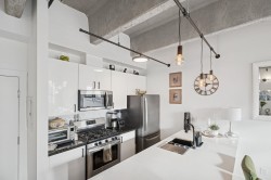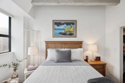 Discover a captivating NY style loft nestled in the vibrant heart of Uptown New West! Immerse yourself in the allure of this fully renovated gem, boasting lofty 11 ft ceilings that evoke a sense of grand openness. Brand-new kitchen seamlessly integrates with the living area, creating a perfect atmosphere for hosting. Updated bathroom and kitchen with new countertops, appliances, lighting, and laminate flooring. Features large windows, in-suite laundry, and walk-in closet for convenience. Well-maintained building with upgrades: exterior paint, plumbing, fire panel, secure mailboxes, and modern elevators. Rooftop deck for sunbathing and BBQs. Close to restaurants, shopping, transit, library, and Queens Park. Easy to show - don't miss out on this opportunity!