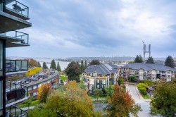 Welcome to the Residences at Victoria Hill! This bright SW-facing corner unit has a large primary bed w/ walk-in closet & full ensuite, ample second bedroom & a large den (3rd bed/office - no closet). Enjoy sweeping views of the Fraser River & mountains from the light-filled living space or your large 16x8 covered balcony. The oversized, functional kitchen features granite countertops, full-sized appliances, ample storage & a large walk-in pantry! Living & dining flow seamlessly between the bedrooms, thoughtfully designed on opposite sides for added privacy. Includes 1 secure parking stall & 1 storage locker. Complex amenities include an outdoor pool/hot tub, fitness room/sauna & 2 guest suites—all steps to Queen’s Park, transit & trails! OPEN HOUSE SUN FEB 01 3-5pm