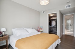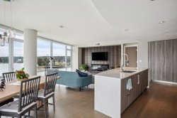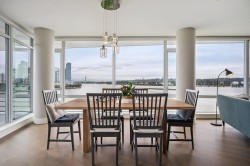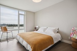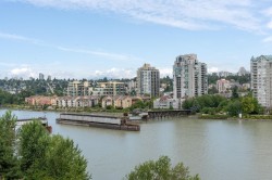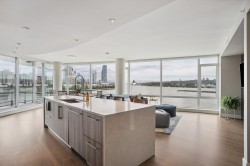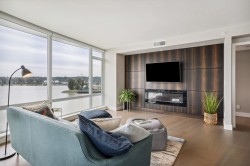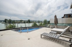 Welcome to this 2 bed 2 bath luxury unit. Located in Port Royal on the Fraser River waterfront. NE facing corer unit which overlooks the Fraser River and has unobstructed views of the city skyline and mountains. Engineered hardwood floors with geothermal heating/cooling throughout. Open kitchen concept with island and breakfast bar, Gaggeneau appliances & Italian cabinets. Living room includes an electric fireplace on a custom wood-paneled feature wall. Master bedroom has walk in closet with ensuite containing 2 sinks, heated floors, tub and shower. 5 mins drive from Hwy 91, Marine Drive and Queensborough Landing for shopping and services. Situated right beside river trail, and a short walk to Port Royal Park and local community garden.