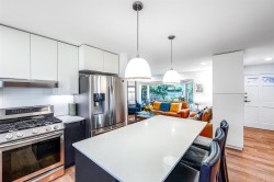 Exquisitely renovated and impeccably maintained, this 3-bedroom, 2-bathroom home sits on a sun-filled lot and features a bright, flowing layout with premium engineered hardwood floors, a spacious family room, and an elegant open dining area. The gourmet kitchen boasts top-quality appliances, sleek custom cabinetry, and refined finishes, while three generously sized bedrooms provide exceptional comfort. Outdoors, a fully fenced, south-facing backyard offers a private retreat for entertaining or relaxing. The property includes parking for six vehicles, upgraded interiors, and ample storage. Just one block from an elementary school and moments from parks, trails, tennis courts, shopping, and daily amenities—plus quick access to Downtown Vancouver—this home is among the North Shore’s finest.