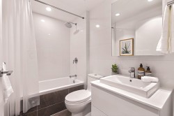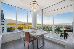 Welcome to this exceptional 2-bedroom, 2-bath luxury corner suite at Park West, offering stunning ocean, mountain, and city views. This bright home feat ures a modern open-concept layout with 9 ft ceilings, engineered hardwood floors, central air conditioning, and expansive windows. The chef-inspired kitchen boasts premi um upgraded Miele/GAGGENAU appliances and quartz counter tops. Enjoy resort-style amenities including a fitness centre, outdoor pool, hot tub, BBQ area, guest suites, and lounge. Steps to Park Royal, Ambleside Beach, trails, and minutes to Downtown Vancouver-luxury and convenience combined.