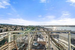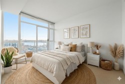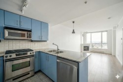 LOCATION LOCATION LOCATION. Perched on the 21st floor, this refined 1 bed & Den unveils panoramic vistas of the North Shore mountains and glistening ocean. The intelligently designed layout features an elegant, open-concept kitchen that transitions effortlessly into expansive dining and lounging areas, while the secluded primary suite provides a serene retreat. Premium comforts include a gas cooktop, full AIR CONDITIONING, and an inviting balcony perfectly suited for sunrise coffees or golden-hour unwinding. AC, heat, and gas are all incorporated into the maintenance fee. Residents enjoy an array of hotel-inspired amenities, including an indoor swimming pool, state-of-the-art fitness centre, hot tub, and more. Tenanted above market value at $2650/month. Contact listing agent for details