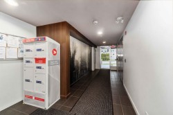 Here's a real gem! A super cool one-bedroom that makes a perfect starter or pied-à-terre. Air conditioned, concrete construction, in-suite laundry, granite countertops, stainless steel appliances, and a gas range. Take in city and harbour vistas, glowing sunsets, and the North Shore mountains. Step outside to a covered balcony with gas hookup—an ideal bonus living space. A good functional plan with no wasted space. Just one block away from the amenities of Central Lonsdale and minutes to all things Lower Lonsdale, including the Seabus. One parking stall, ample storage, pet-friendly, wheelchair accessible, proactive strata & healthy CRF. Comfortable, central, and cool—even on those sticky summer days. Pets OK w/ some restrictions.