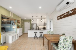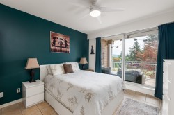 Exciting opportunity at Deerfield by the Sea! This stylishly updated 2 bdrm + glass-walled den, 2 bath home offers 961 sq/ft of bright, air-conditioned living. Enjoy renovated, open kitchen with bar seating, updated baths, gas fireplace, and large windows framing a peaceful, south-facing treed view. Bedrooms are smartly separated for privacy, and the den is perfect as an office, nursery, or guest space. One floor above ground—safe and elevator-free access! Covered balcony ideal for year-round BBQs. Walk to the beach and rec/gym facilities. In-suite laundry, 2 parking, storage locker. Rentals & pets welcome. Leasehold prepaid to 2095. Open SUN Jan 18th 11:00am-1:00pm.