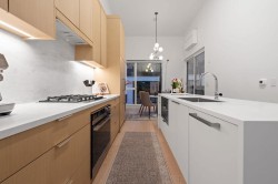 Experience modern luxury, contemporary architecture, and an amenity-rich location in this 3-bedroom townhome at Morrison on the Park. From the moment you enter, you’ll notice the quality of materials, thoughtful design, and craftsmanship that’s rare in new homes today. The main level features a primary bedroom with custom millwork, a walk-through closet, and a spa-like ensuite with rain shower. Two additional spacious bedrooms, full bath, and laundry complete this level. Upstairs offers open-concept living ideal for entertaining, with over-height ceilings, large windows, a generous patio, large island and dining area. Step out to your private rooftop patio with city & mountain views—perfect for summer nights. Includes a 2-car private garage, two XL storage lockers, A/C and EV charging.