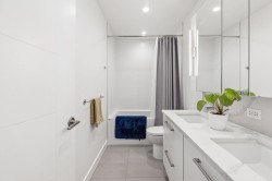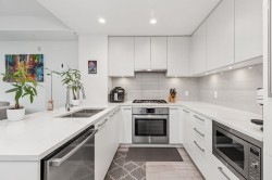 Welcome to Ebb & Flow in Lions Gate Village. This spacious 2 Bedroom + Den, 2 Bathroom upper level stacked townhome offers excellent privacy with a stunning rooftop patio. Features include an open layout, radiant in-floor heating, Bosch appliances, quartz counters, roller blinds, and a large primary bedroom with walk-in closet and ensuite. The den is perfect for a home office, nursery or 3rd bedroom as it's currently being used. This home comes with 2 parkings stalls and storage and A/C-ready rough-in. Steps to the new Community Centre, trails, and a short 4-minute drive to Park Royal and Ambleside Beach. This home lives like a 3 bedroom for the price of 2! Open House 2-4PM Saturday