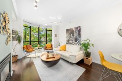 Lower Lonsdale's award-winning One Park Lane delivers luxury with a rare edge: no suite above you. This renovated 2-bed/2-bath showcases 9' ceilings, floor-to-ceiling windows, and a gas fireplace that anchors the open plan. The chef's kitchen with granite counters, premium stainless appliances, Grohe fixtures is perfect for hosting. City and harbour views shimmer through treetops and your private sundeck extends the living space beautifully. Solid concrete construction ensures peace and permanence and this home comes with EV-ready parking plus storage locker. Building amenities include gym, social lounge, private theatre, and stunning landscaped courtyards. Step outside to the Seabus, Shipyards District, Lonsdale Quay, and endless North Shore trails. Pets and rentals allowed.