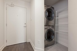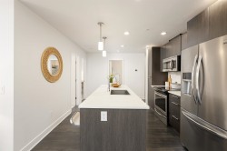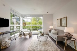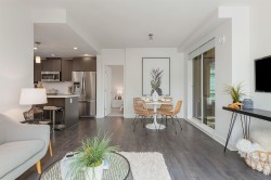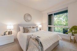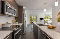 Incredible opportunity to own a rare 3 bedroom corner suite at "The Shore" by Adera. Positioned perfectly, you'll enjoy the privacy & peaceful views of Mosquito Creek from two oversized patios. Featuring an open concept floor plan w/ floor-to-ceiling windows, the home is flooded with natural light. The kitchen offers an island w/ bar seating, ideal for those that love to entertain & enjoy casual meals. Separate primary bedroom w/ gorgeous ensuite bathroom. Further features incl. radiant in-floor heating, s/s appliances & fresh paint. Complex offers an impressive patio area w/ water feature, gym, yoga room & kid's play area. Located in a thriving community w/in steps of the North Shore Spirit Trail, future Harbourside waterfront community, shopping, restaurants & more!