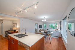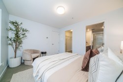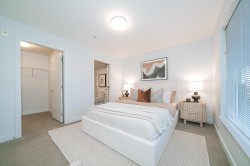 Orizon on Third by Intracorp, a LEED®-certified building, offers modern urban living in the heart of North Vancouver. This bright north-east facing corner 2-bedroom home features excellent bedroom separation, two walk-in closets, and a spacious open-concept layout. Developer upgrades include radiant in-floor heating, enhanced shelving, and upgraded patio flooring. The chef's kitchen boasts quartz countertops, stainless steel appliances, ample storage, and a large island, opening to an expansive patio ideal for summer BBQs. Enjoy premium amenities including a rooftop terrace with BBQ and gas fire pit, fitness centre, bike room, and EV charging, all just steps from Lonsdale Quay, the Shipyards, and top restaurants.