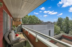 Welcome to this BRIGHT and beautifully updated TOP-FLOOR, SOUTH-facing unit in Chinook House, offering 2 BED + 1.5 BATHS. This cozy penthouse features a spacious, functional layout with generous principal rooms and excellent in-unit storage. Step outside onto your private patio & enjoy a morning coffee. The home includes 1 parking / 1 locker & convenient shared laundry on the same floor. With a proactive strata that has completed several key building updates in recent years, you can move in with peace of mind. Rentals allowed and pets are welcome CATS ONLY, no dogs. Located just one block from Waterfront Park & steps from the Seabus, Shipyards District, Lonsdale Quay, shops, + restaurants, this unbeatable location offers the BEST OF NORTH VANCOUVER LIVING. OPEN HOUSE SEP 20, 2-4 PM.
